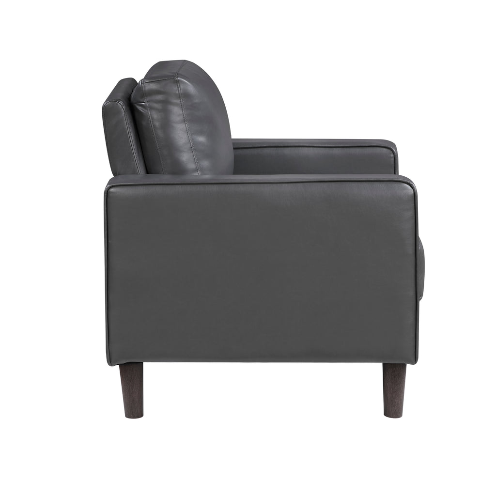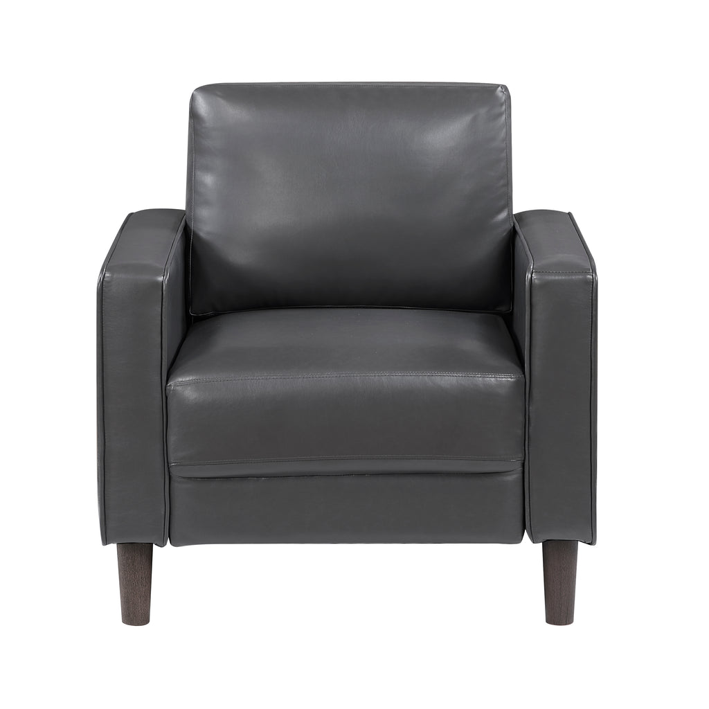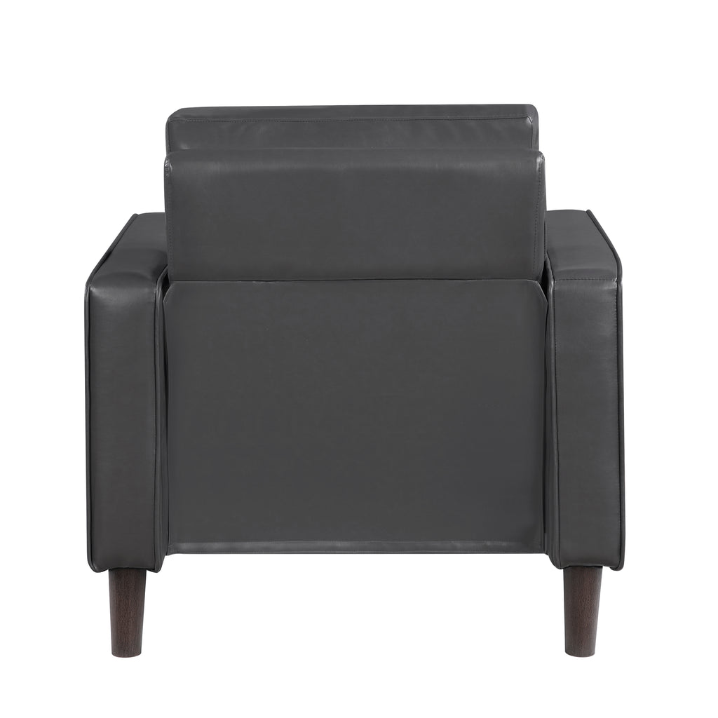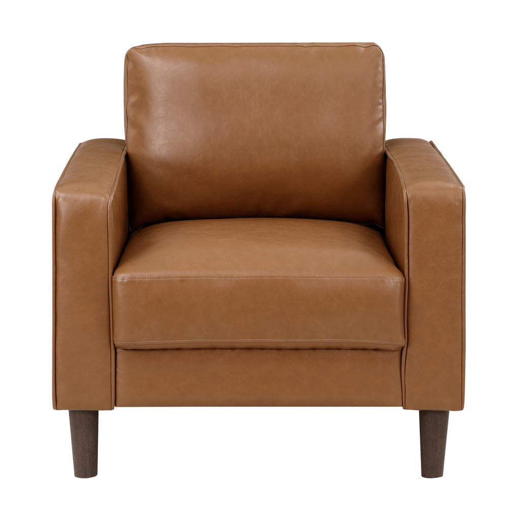 The elements that define modern style create a timeless look for your home with the addition of the Malcolm Collection. Track-style arms and defining welt lend a tailored aesthetic to the clean lines of the chair making the piece well-suited for modern, transitional, rustic, or industrial inspired spaces. The collection is covered in brown faux leather upholstery further lending to the decorative versatility of this modern-classic offering.