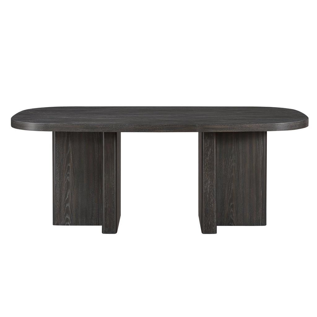 This stunning dining table, crafted from oak veneer, wood, and engineered wood with an elegant ebony finish and textured wood grain surface, offers a sophisticated and contemporary centerpiece for your dining area. Designed to comfortably seat six, its sleek lines and dark, rich tones create a striking visual impact, perfect for both everyday meals and stylish entertaining. The robust construction ensures lasting durability, while the unique textured finish adds depth and character to your space. Assembly is required to complete this exquisite and modern addition to your home.