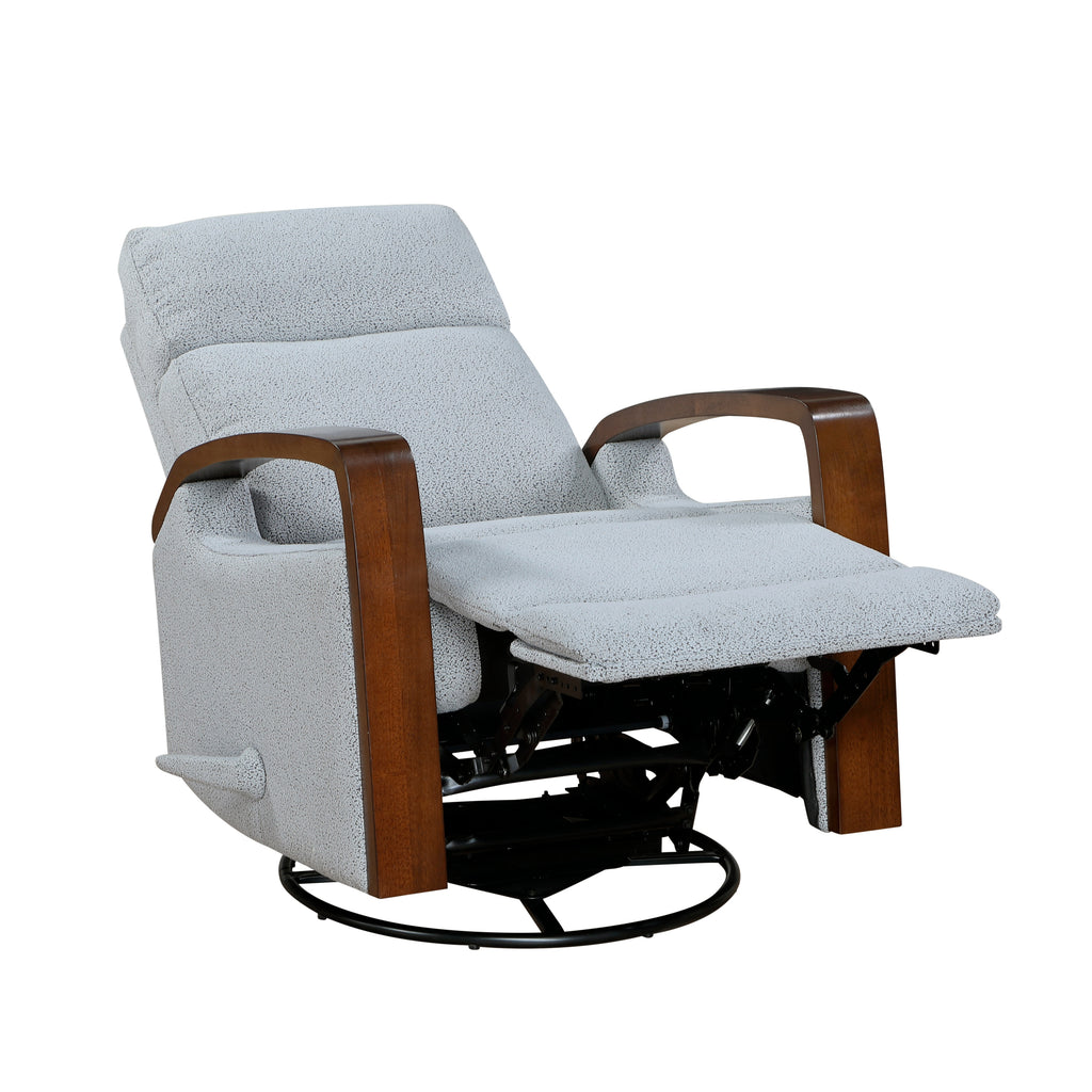 This versatile Swivel Glider Reclining Chair offers the ultimate in comfort and relaxation, perfect for any living room or nursery. Upholstered in a soft, breathable faux leather, it provides a luxurious feel while being easy to maintain. Designed for supreme comfort, it features plush foam padding over supportive pocket coils, ensuring a cozy seating experience whether you're relaxing, gliding, or reclining. The convenient pull-handle allows for effortless reclining, while the gentle gliding motion and full 360-degree swivel capability offer unmatched versatility and ease of movement, making it an ideal choice for unwinding after a long day or soothing a little one.