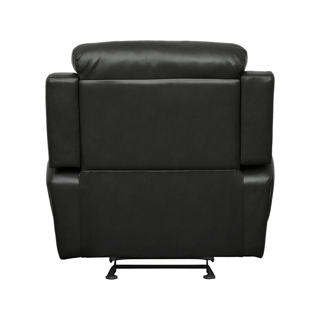 With the soothing rock of the reclining chair, your comfort is taken care of in the Marille Collection. The collection is offered in black faux leather.
