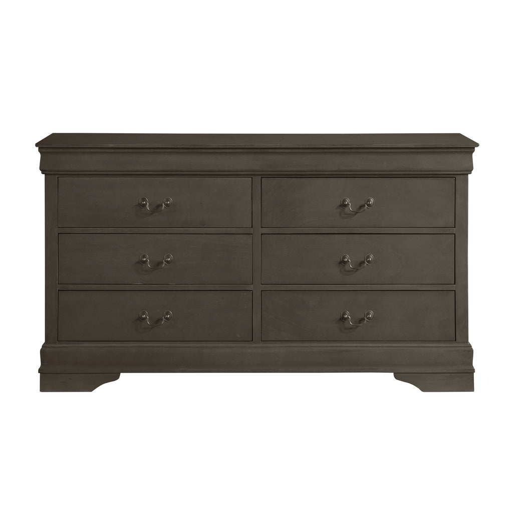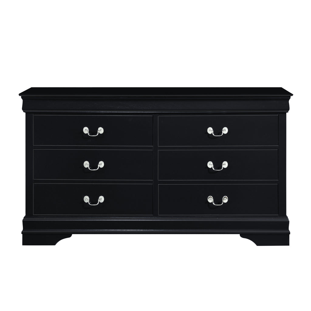 Traditional in design and modest in scale, the elegant Mayville Collection takes its design inspiration from the classic Louis Philippe styling. The Okume veneer of the dresser is paired with a black finish and is accentuated by antique nickel tone drop handles.