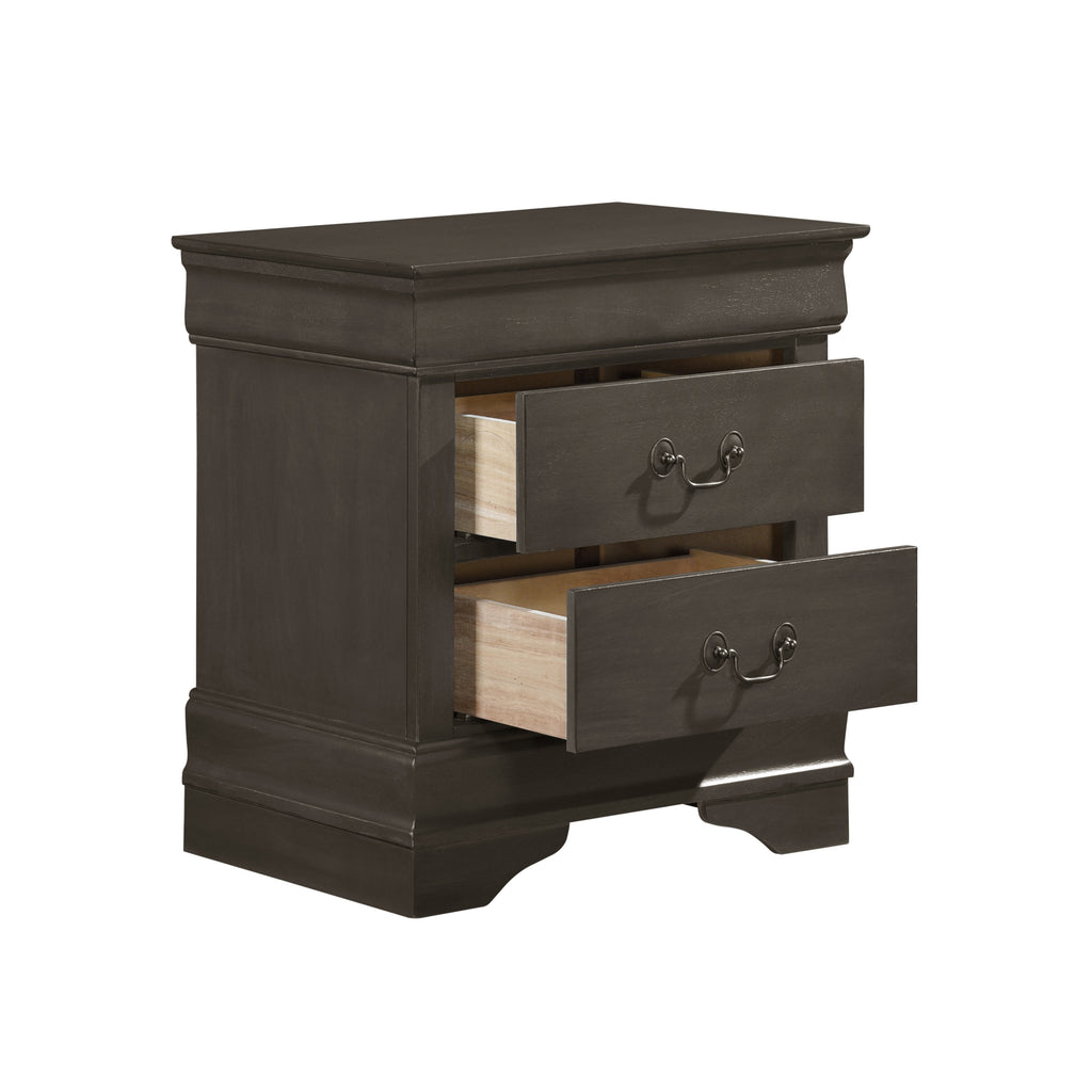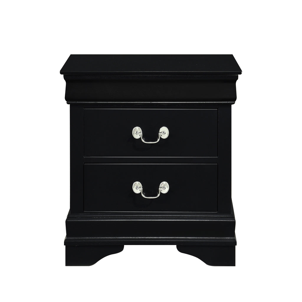 Traditional in design and modest in scale, the elegant Mayville Collection takes its design inspiration from the classic Louis Philippe styling. The Okume veneer of the nightstand is paired with a black finish and is accentuated by antique nickel tone drop handles.