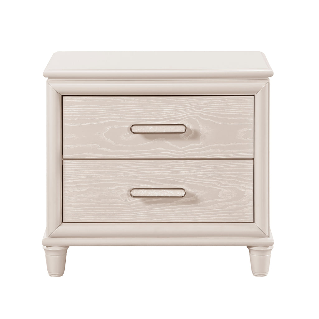 Create a bright and organized bedside space with this modern two-drawer nightstand, the perfect blend of style and technology. Finished in a crisp white and accented with subtle embossed panel drawer fronts, this nightstand provides a chic foundation for your bedroom decor. It offers unparalleled convenience with built-in USB charging ports (both USB-A and USB-C), allowing you to easily power all your devices right next to your bed. The two spacious dovetail drawers are built to last and open smoothly on durable ball-bearing glides, providing ample storage for your nighttime essentials, all finished with sleek chrome-tone bar pulls.