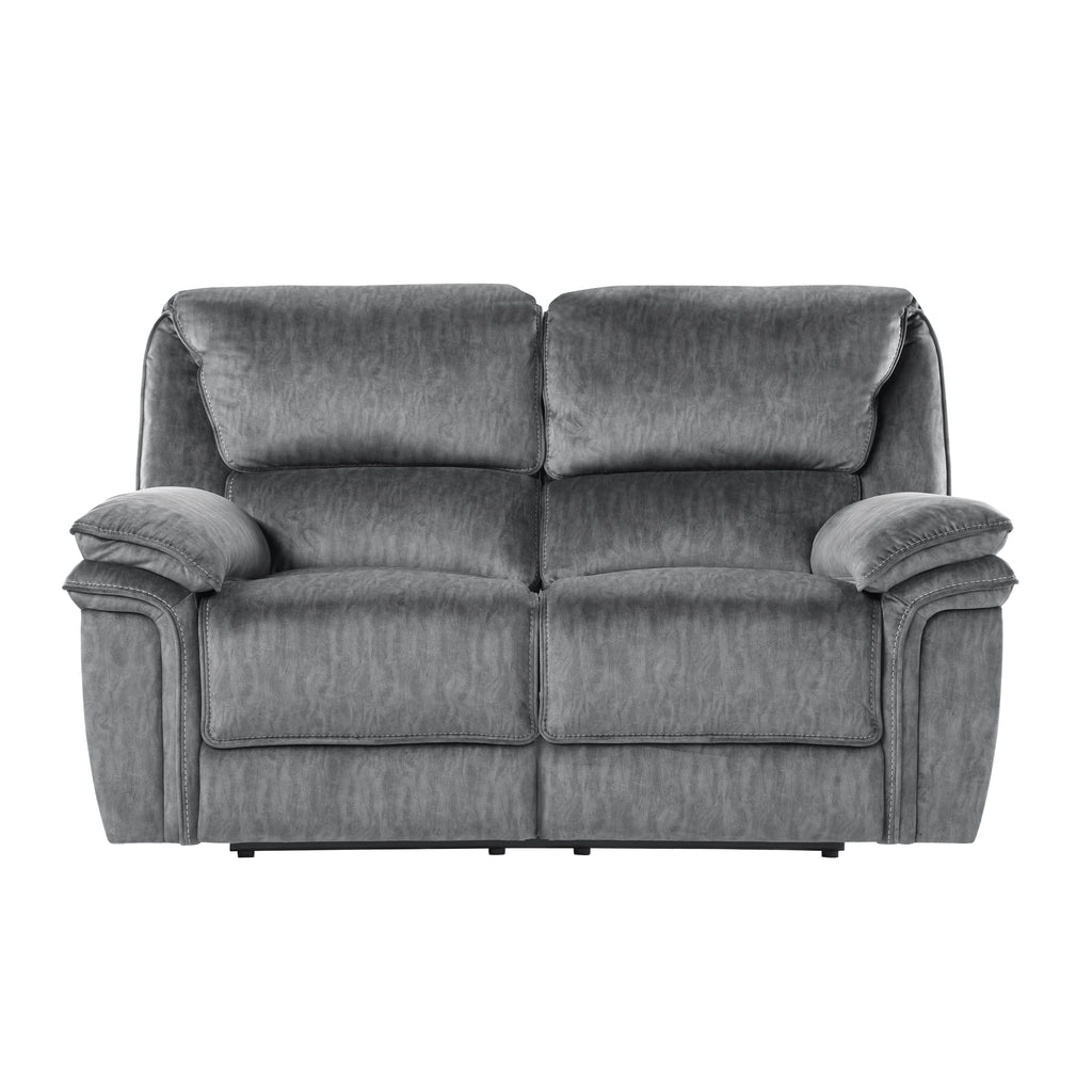 With a versatile style that is perfect for your casual living room, the Muirfield Collection’s plush seating and modern aesthetic create a platform for your relaxation. The plush pillow-top arms and seating of the love seat are covered in gray textured microfiber upholstery for neutral accent to your home’s decor. Manual reclining mechanisms operate with the pull of a side-mounted tab, that once engaged, take you from seated to reclined in an easy motion.