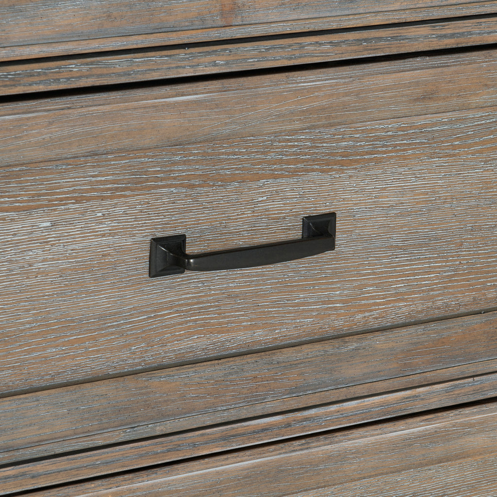 The Newell Collection’s subtle rustic aesthetic and transitional style pairs effortlessly with your desire to refresh your bedroom’s current look. The design of the nightstands’s drawer fronts features recessed picture frame molding while dark-finished metal bar hardware accents each drawer front, creating perfect contrasting complement to the two-tone gray and oak finish of the piece’s oak veneer.