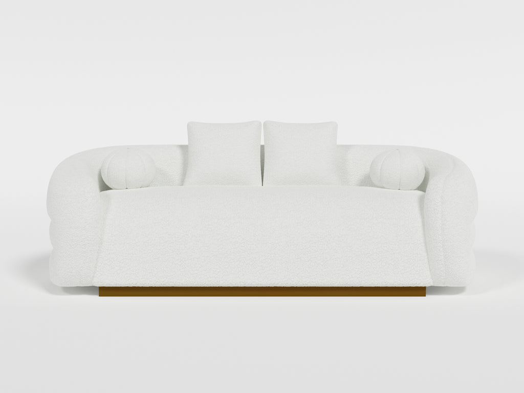 Upgrade your living space with the luxurious Novella Sherpa Sofa, perfect for adding comfort and modern style. The soft Sherpa fabric upholstery ensures a cozy seating experience, while the attached back and seat cushions provide effortless comfort. The sturdy solid wood base in a sleek gold finish adds a touch of elegance, making this sofa a standout piece in any room. Complete with two matching pillows, this sofa blends style and comfort seamlessly.