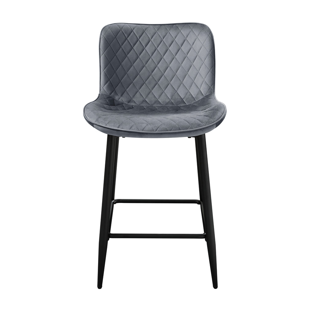 Serving as the perfect complement to your modern casual dining space, the Nya Collection pairs with your existing counter or bar tabletop. The available 24-inch height chair features a seat which is covered in dark blue velvet fabric upholstery and is supported by black metal legs. The diamond stitch pattern of the seat further lends to the modern aesthetic of the piece.