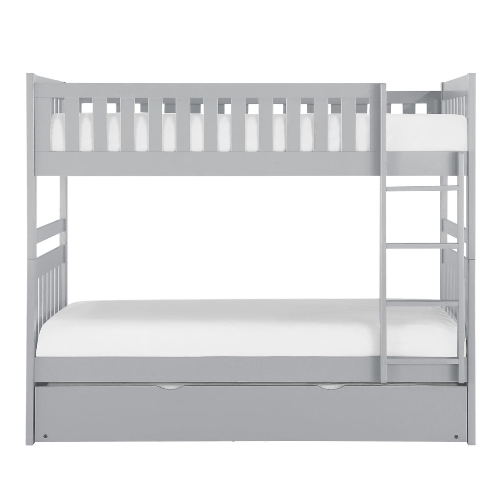 Maximizing sleep space is achieved with the stylish Orion Collection. This transitional twin over twin bunkbed is featured in a gray finish making it an appropriate choice for a number of youth bedroom settings. 78 x 43.5 x 65.5H