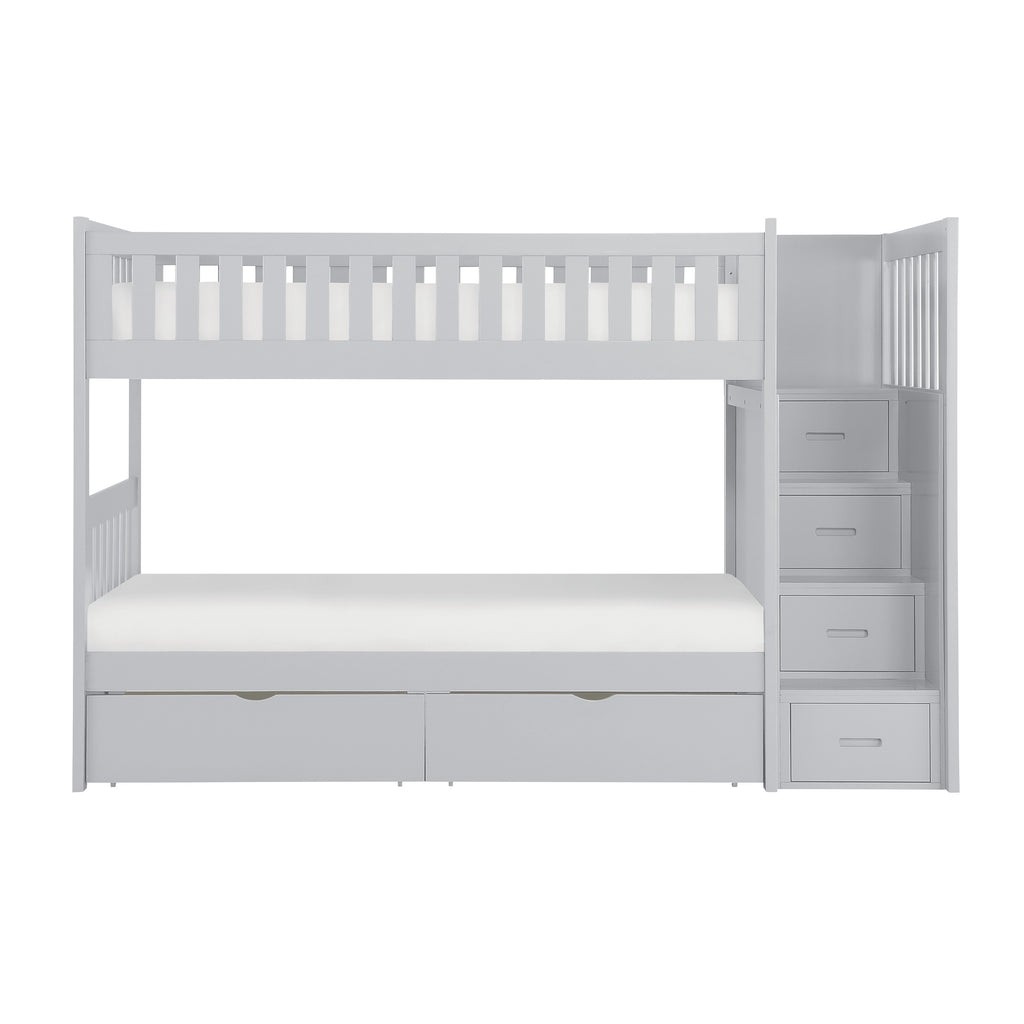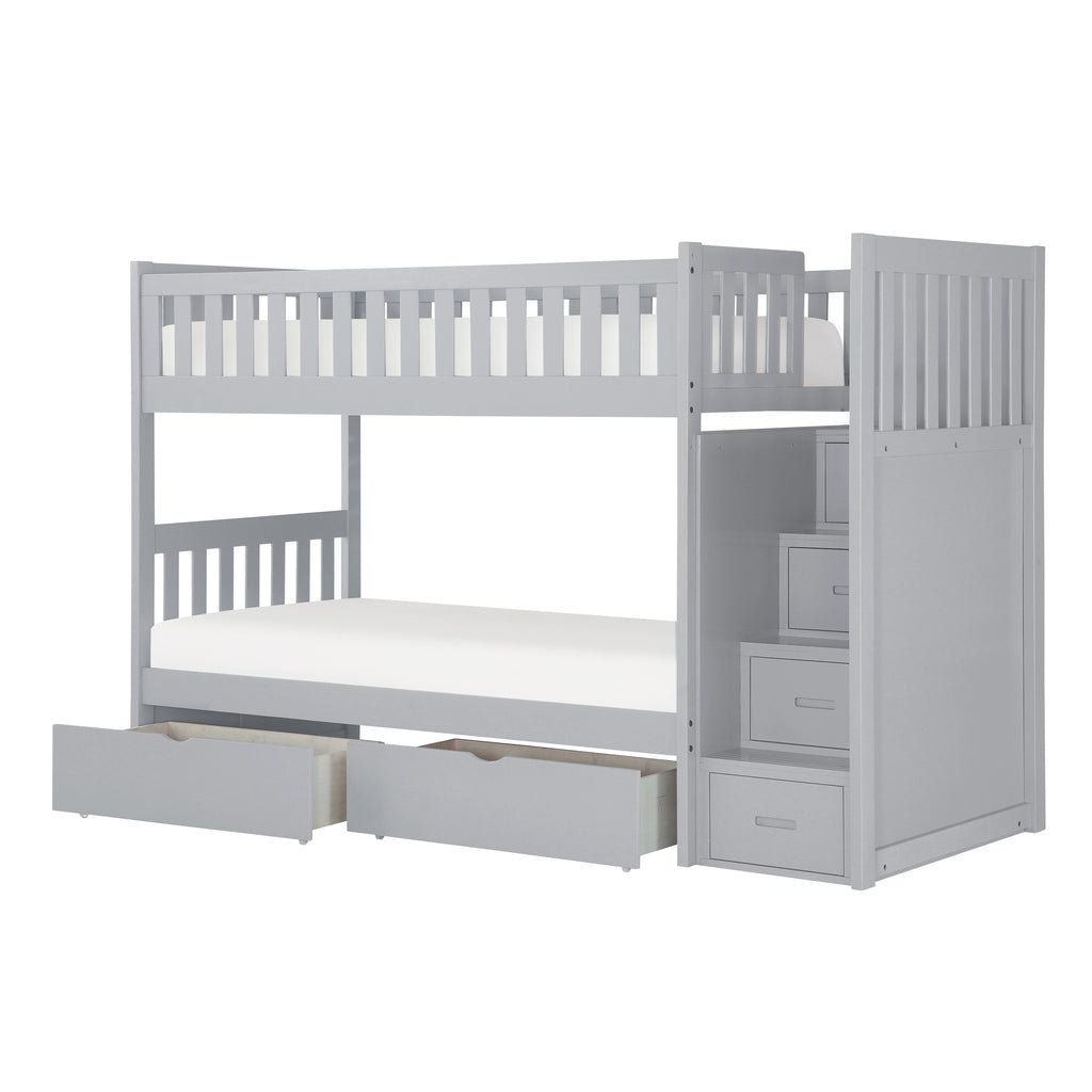 Orion (5) Twin/Twin Step Bunk Bed with Storage Boxes in Gray - B2063SB-1*T
