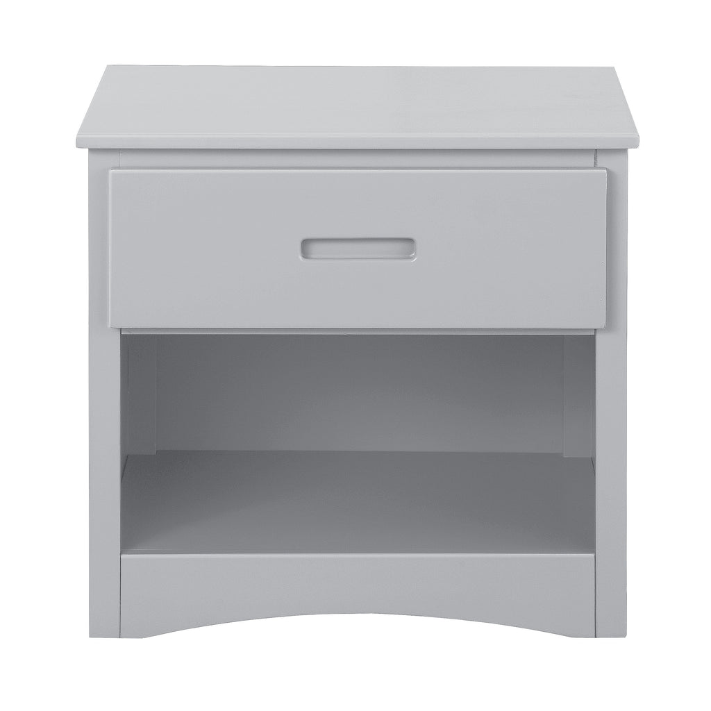The transitional design of the Orion Collection’s nightstand is featured in a gray finish making it an appropriate choice for a number of youth bedroom settings. Also available: twin over twin bunkbed, twin over full bunkbed, full over full bunkbed, twin over twin trundle bed with two built-in drawers, underbed dual toy boxes, twin trundle, dresser, mirror and chest.