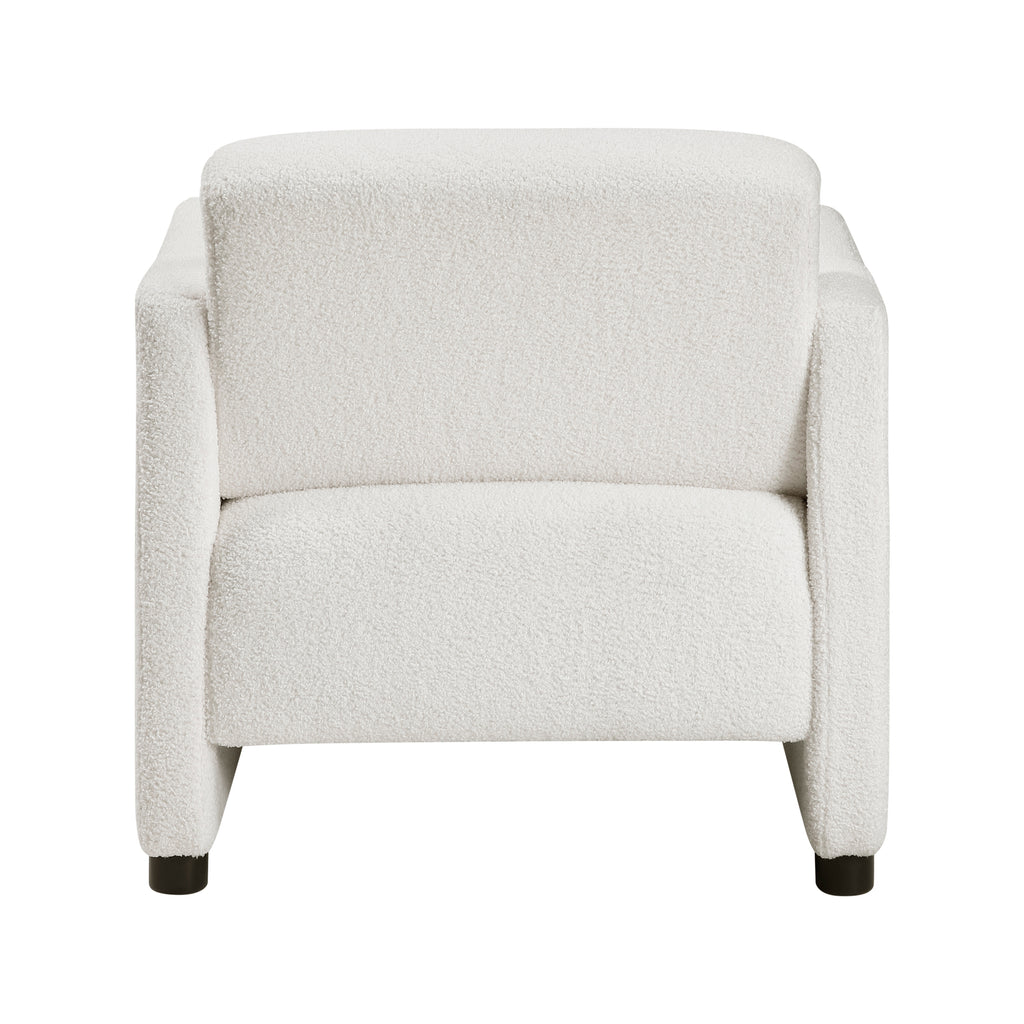Elevate your living space with the modern elegance of this beige boucle armchair. Featuring a sturdy plywood frame and foam padding over pocket coils, this chair offers exceptional comfort and support. The luxurious boucle fabric upholstery adds a touch of sophistication, while the clean lines and contemporary design enhance any room's aesthetic. The attached back and seat cushions provide a seamless look and feel, and with a 300lb weight capacity and easy assembly, this armchair is perfect for creating a stylish and inviting atmosphere in your living room, bedroom, or reading nook.