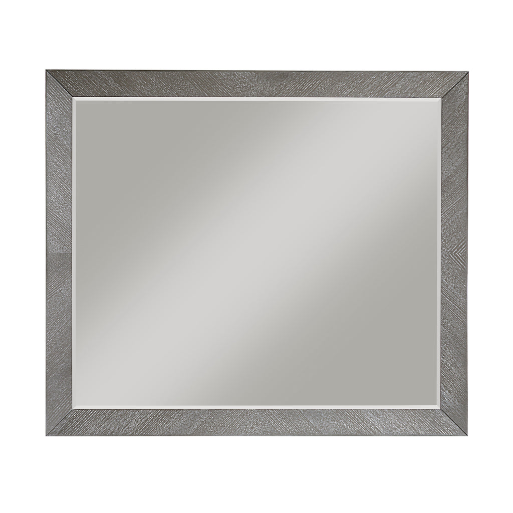 Enhance the visual appeal and functionality of your bedroom or living space with this stylish mirror, designed to complement a variety of interior decors. Crafted with a frame of embossed oak veneer, wood, and engineered wood, and finished in a chic gray, this mirror offers both durability and a sophisticated aesthetic. Its clean lines and subtle texture add depth and brightness to any room, creating a more open and inviting atmosphere. Perfect for pairing with a dresser or mounting as a standalone decorative piece, this mirror is a versatile addition that brings both elegance and practicality to your home.