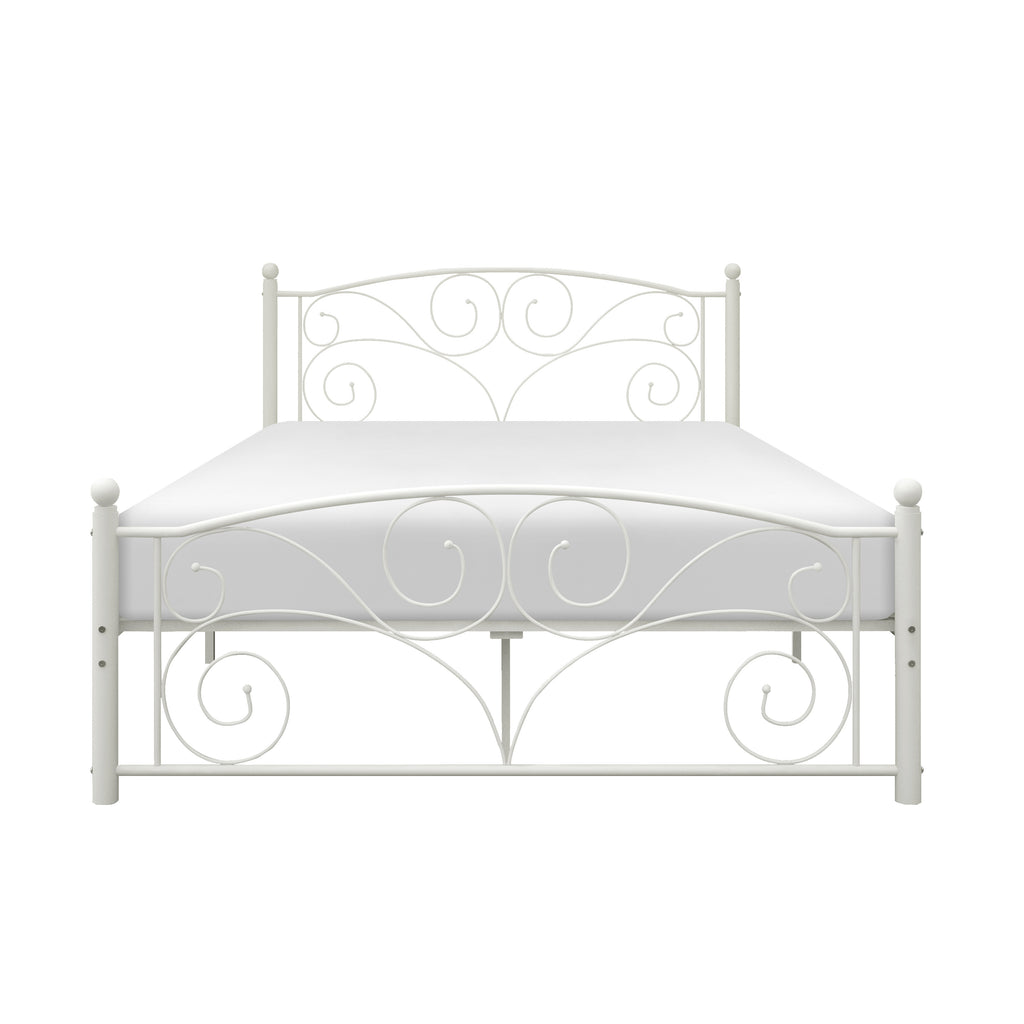Perfectly at home in a child’s or second bedroom, the Pallina Collection will be a stylish addition to your home. Crafted of metal in white powder coating, with refined design that decorates the full size headboard and footboard, this elegant bed will pair with a number of room styles. The metal slat system requires that a mattress only is needed to complete the bed. Also available in twin.