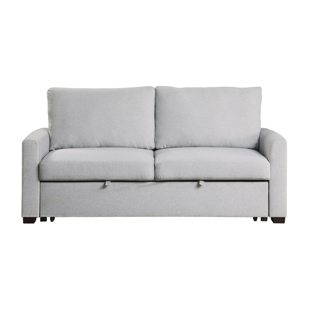 With functionality beyond the expected, the Price Collection presents as a unique seating option for your household. The pull-out bed and click-mechanism seat back of this sofa engage to create a platform for sleeping or relaxing. Offered in a gray fabric cover for decorative neutrality, the classic design furthers the placement ability within a number of home environments.
