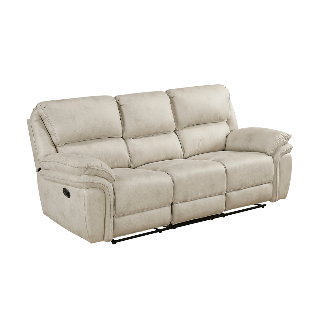 Indulge in luxurious comfort and versatile seating with this spacious double reclining sofa, beautifully upholstered in a soft, polished microfiber. Designed for ultimate relaxation, this sofa features independent manual tab-pull reclining motion on both ends, allowing multiple users to effortlessly find their perfect lounging position. Constructed with a robust frame of solid wood and plywood and metal-reinforced seats, it ensures exceptional durability and support for years of enjoyment. The generous foam padding over supportive pocket coils provides an incredibly plush and comfortable seating experience. With attached back and seat cushions and a substantial 300lb weight capacity per seat (900lbs total), this reclining sofa is the perfect centerpiece for any living room, offering both elegant style and unparalleled comfort for your family and guests.