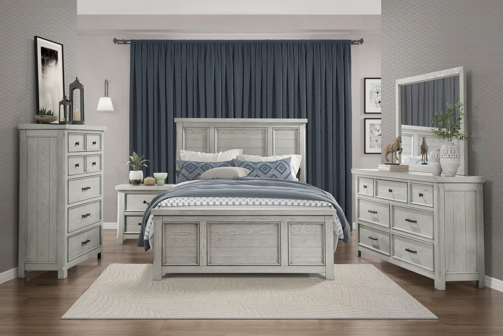 The Providence Collection’s lines and versatile finish create a classic addition for your bedroom. The mirror frame's oak veneer is finished in light gray, serving as a neutral canvas for your personal decorative preferences.