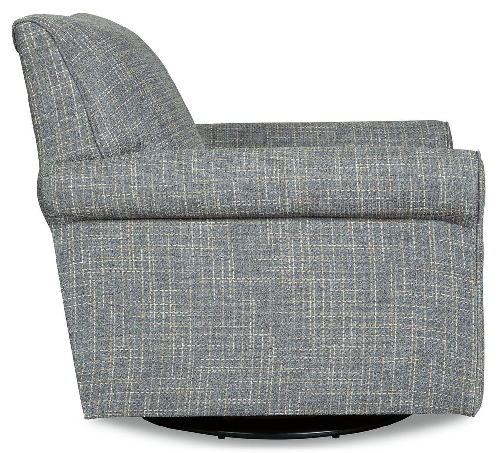 Sporting a tantalizing tweed weave fabric in such a soothing blue hue, this swivel glider accent chair gives the classic roll arm chair a modern twist. Smooth, 360-degree swivel caters to your comfort—and your viewing pleasure. Gentle glider feature is designed to rock your cares away.