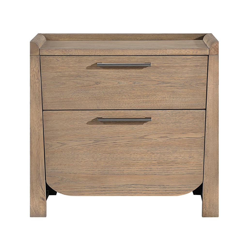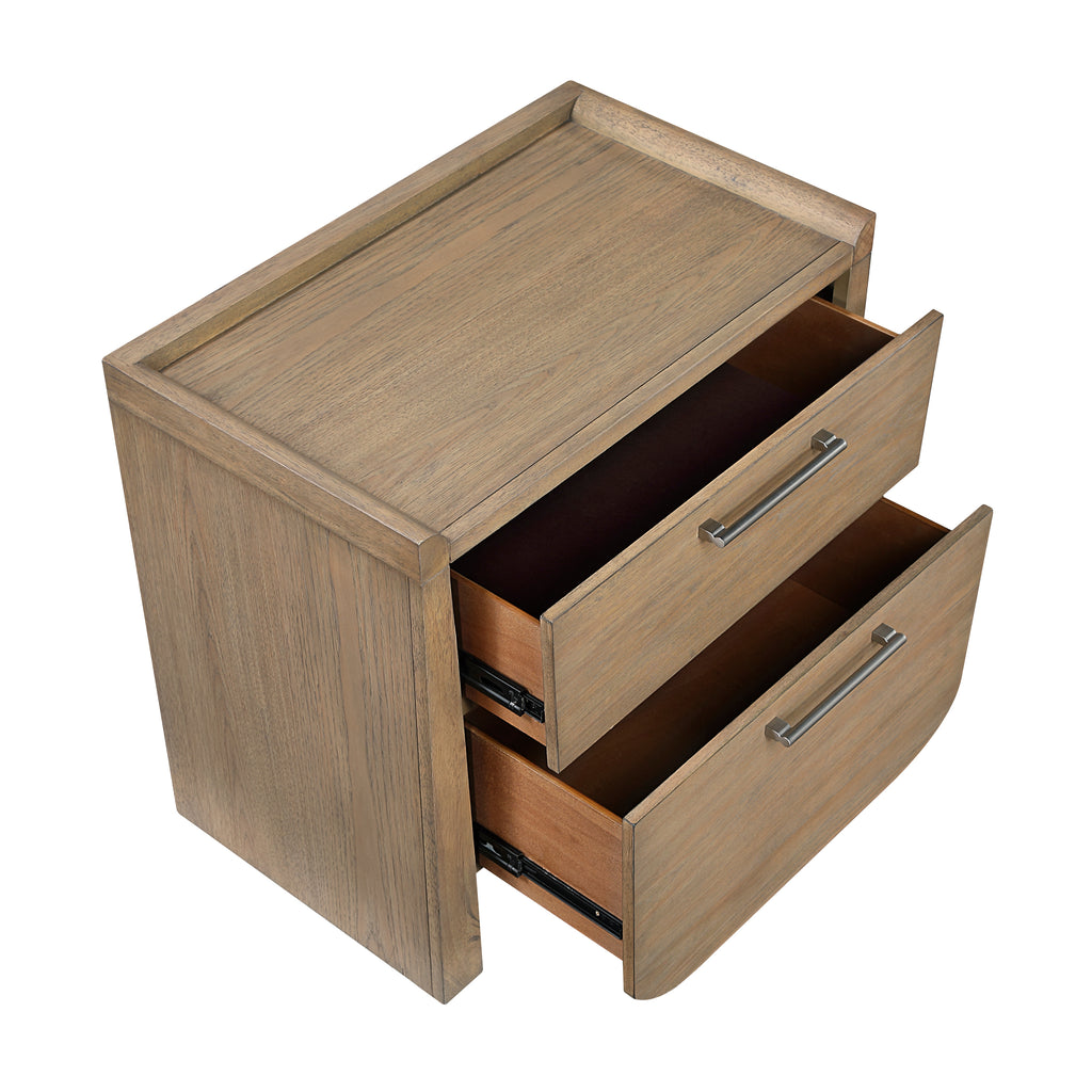 Elevate your bedroom with the perfect blend of rustic charm and modern functionality. This stunning bedside nightstand, finished in a warm light brown hickory veneer, is a must-have for organizing your nighttime essentials with style. The clean lines and beautiful wood grain detailing create a sophisticated look, while the spacious drawers offer a clutter-free solution for books, electronics, and more. Designed for durability and smooth, everyday use, this versatile accent piece provides the perfect spot for a lamp, alarm clock, and your favorite decor, making it an essential addition to any contemporary bedroom, guest room, or living space.