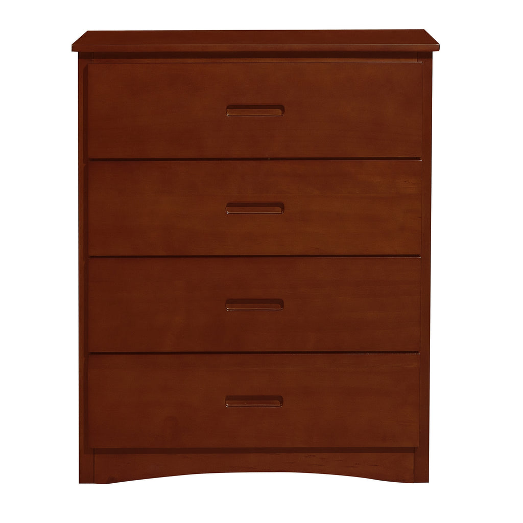The transitional design of the Rowe Collection’s chest is featured in a dark cherry finish making it an appropriate choice for a number of youth bedroom settings. Also available: twin over twin bunkbed, twin over full bunkbed, full over full bunkbed, twin over twin trundle bed with two built-in drawers, underbed dual toy boxes, twin trundle, dresser and mirror.