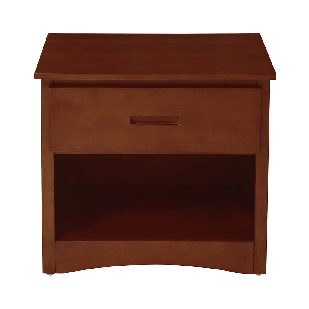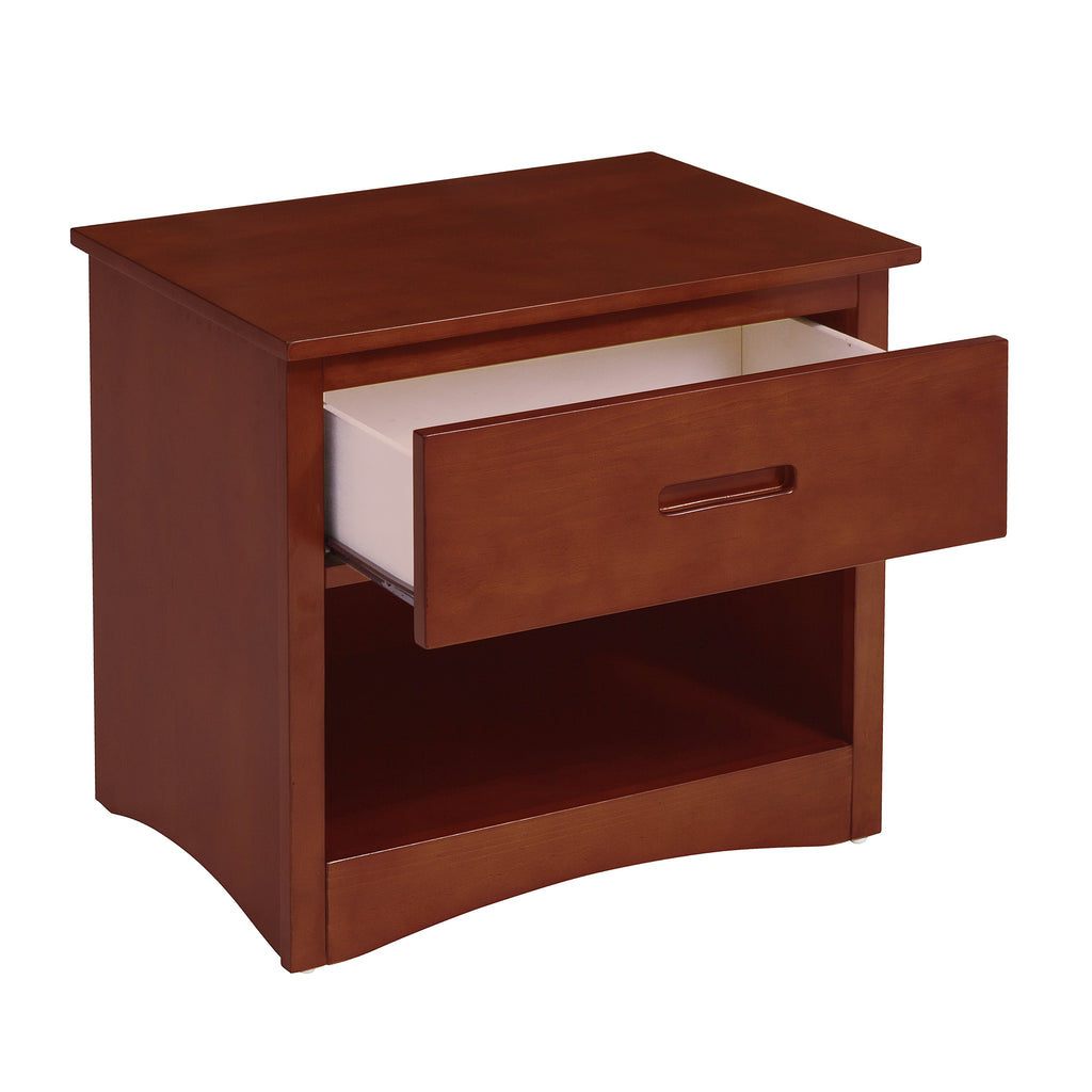 The transitional design of the Rowe Collection’s nightstand is featured in a dark cherry finish making it an appropriate choice for a number of youth bedroom settings. Also available: twin over twin bunkbed, twin over full bunkbed, full over full bunkbed, twin over twin trundle bed with two built-in drawers, underbed dual toy boxes, twin trundle, dresser, mirror and chest.