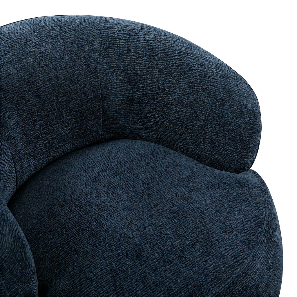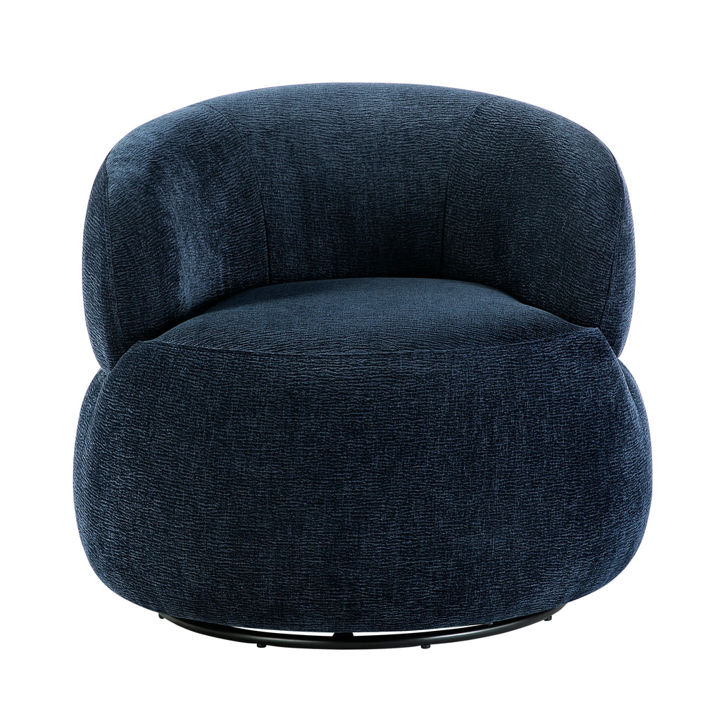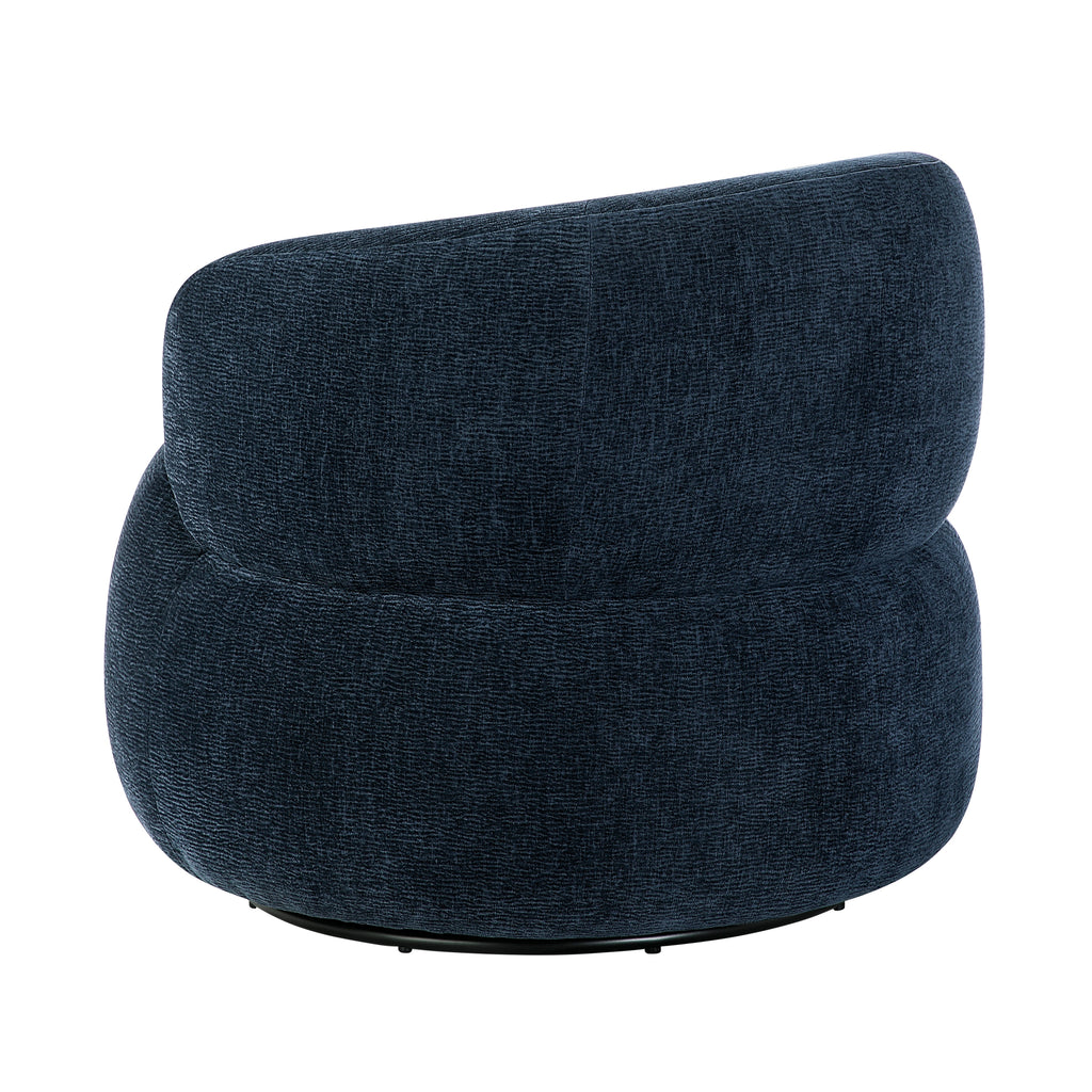Add a touch of modern luxury and cozy comfort to your living room, bedroom, or reading nook with this stunning blue swivel accent chair. Upholstered in rich, textured chenille fabric, this barrel-style seat features a plush foam cushion and a rounded silhouette that invites you to sink in and relax. Built on a robust solid wood and plywood frame with a discreet metal base, it offers a smooth 360-degree rotation, allowing you to easily engage with conversation or view the television from any angle. With its vibrant color and chic design, this chair serves as both a comfortable seat and a sophisticated statement piece that arrives fully assembled and ready to enjoy.
