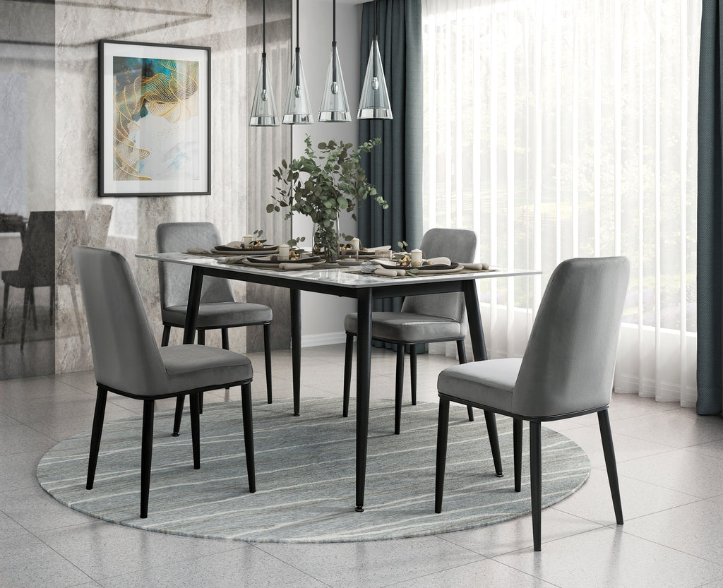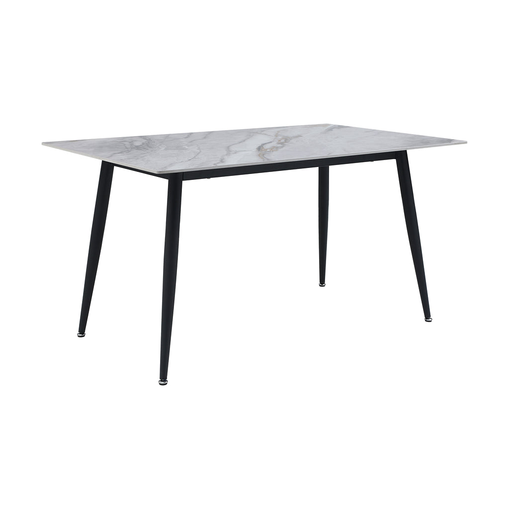 Designed to complement the luxe contemporary look that you love, the Salerno Collection is a stunning combination of modern lines and neutral hues. The sintered stone top has the look of faux marble and is supported by a black finished metal leg table base. 35.5 x 59 x 30H