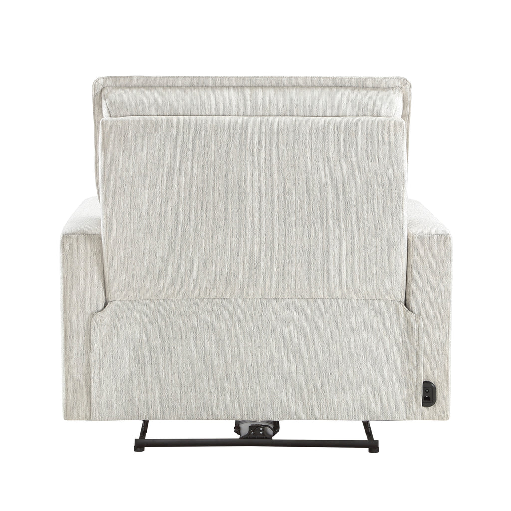With an expanse of seating to fill your living room, the Salida Collection lends modern style, function, and comfort to your home. Hemp white textured fabric upholstery covers the power reclining chair, its light hue an airy palette for your decorative preferences. Power-enhanced reclining functions support ease of movement for the reclining chair while the USB port allows for convenient access to you electronic device. The seating profile of the collection features knife-edge tailoring, and contour stitching, each element lending to the modern aesthetic. 41 x 39.5 x 41H