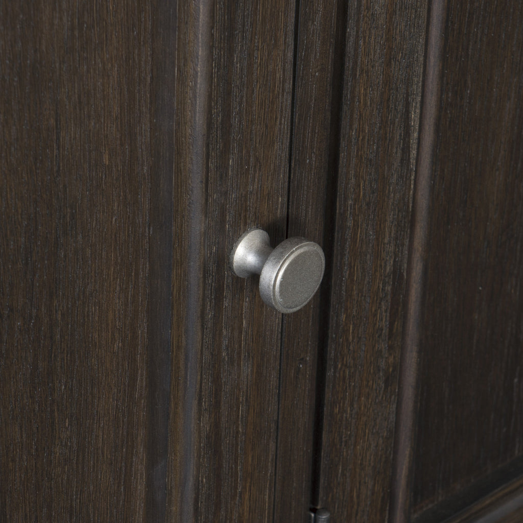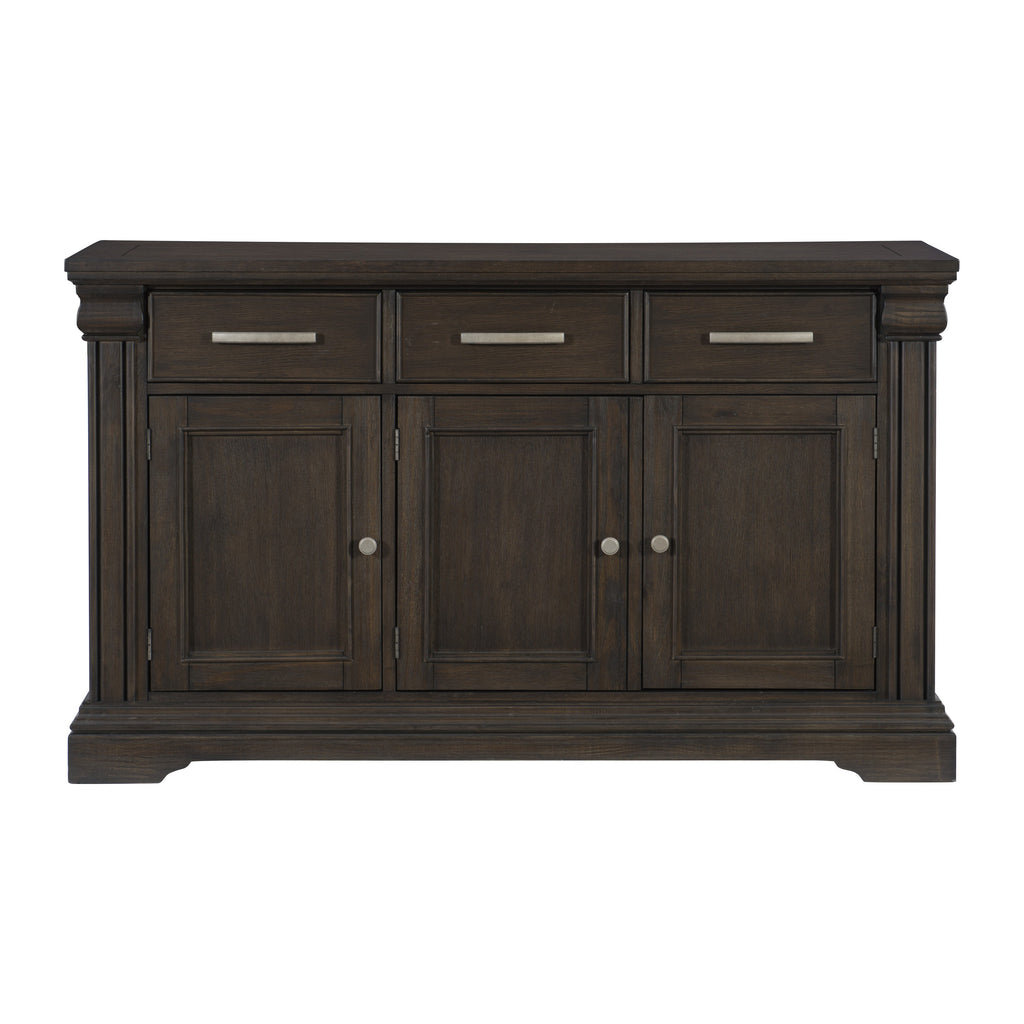 An elegant blend of traditional styling and rustic aesthetic combines to create the look of the Southlake Collection. The wire-brushed rustic brown finish highlights the oak veneer of the server. The server provides ample behind door and drawer storage in which to stow your tabletop accessories. The doors and drawers feature nickel bar and knob hardware. 60 x 18 x 36.5H