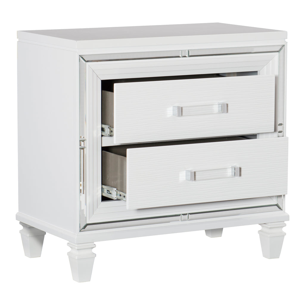 Designed to help your bedroom reach its full glamorous potential, the Tamsin Collection’s unique attributes blend to create a stylish and functional addition to your lifestyle. Mirrored framing provides dramatic enhancement to the nightstand, illuminating the silver-gray finish. Acrylic hardware provides unobtrusive decorative touch to the drawer fronts of the nightstand.