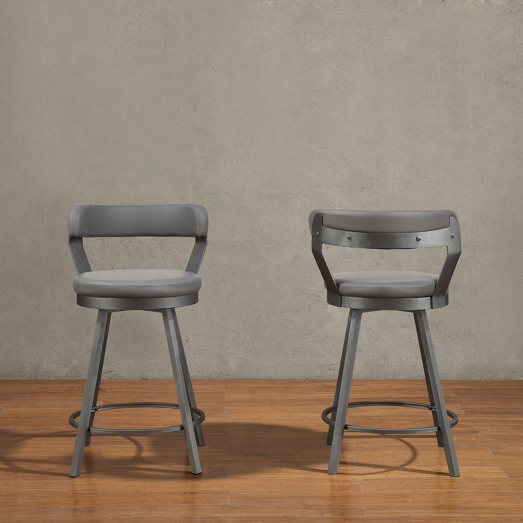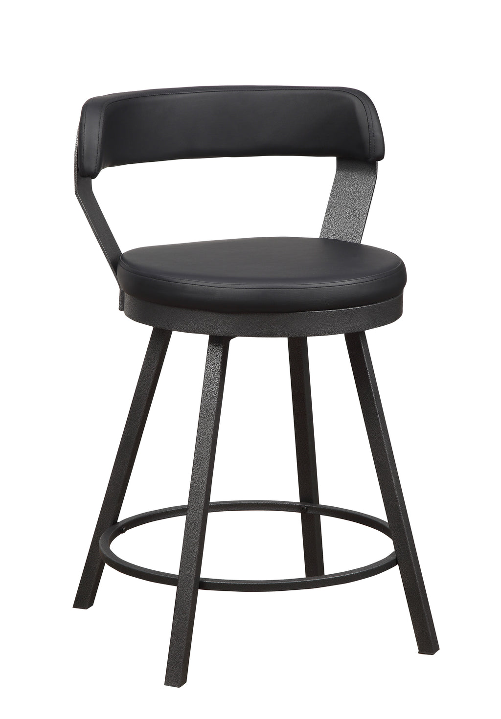 Perfectly styled for your casual dining space is the Appert Collection. This 24-inch counter height chair offering features a dark gray metal base that serves to support the black faux leather round swivel seat. Allowing for perfect placement within your space, the Appert Collection is offered in a 29-inch pub height and 4 additional colors – brown, gray, red and white.