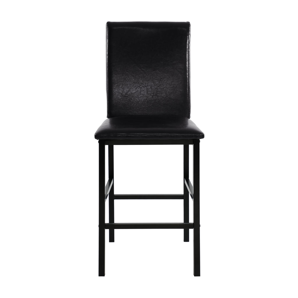 With a scale appropriate for any number of smaller dining spaces, the Tempe Collection will provide the look and style you want in your home. The transitional feel of the counter height chair comes from the black metal legs and the brown faux leather seat.