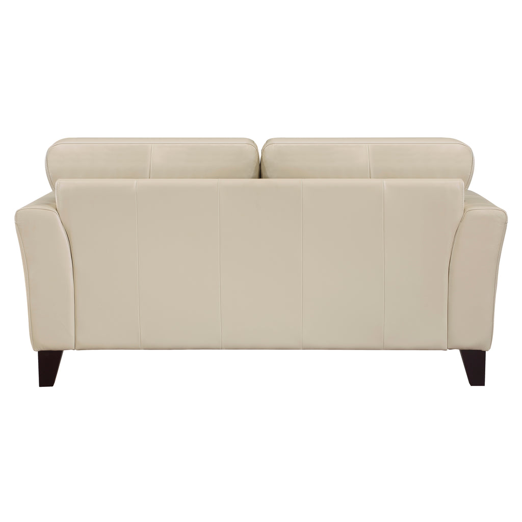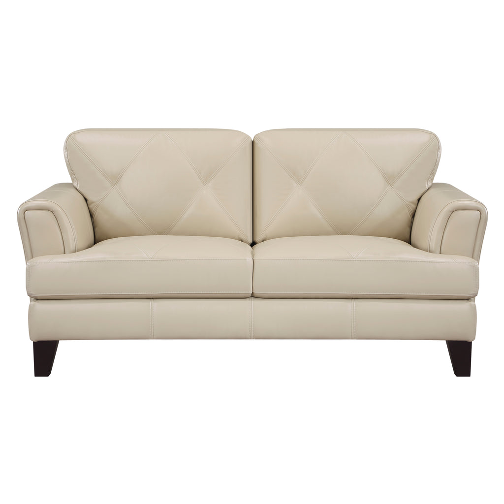 With subtle inspiration from modern European design, the contemporary style of the Thierry Collection pairs understated elegance with defining lines resulting in a sophisticated look for your living room. The cream hue of the love seat’s top grain leather covering – with split-grain leather match – is a neutral decorative selection for your space. Geometric stitching accents the seats of the love seat, while the flare of the track arm completes the modern profile.