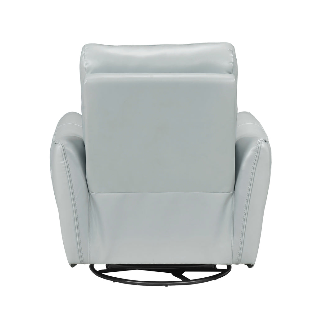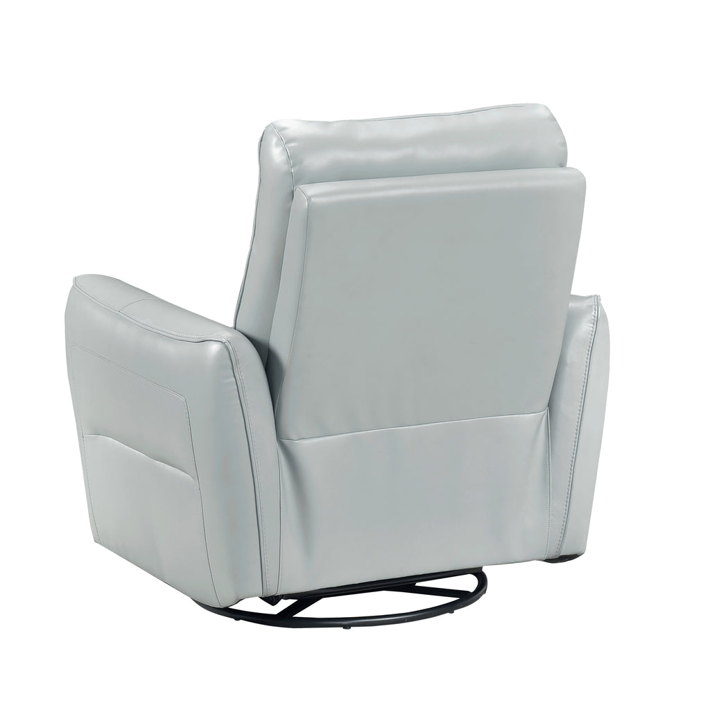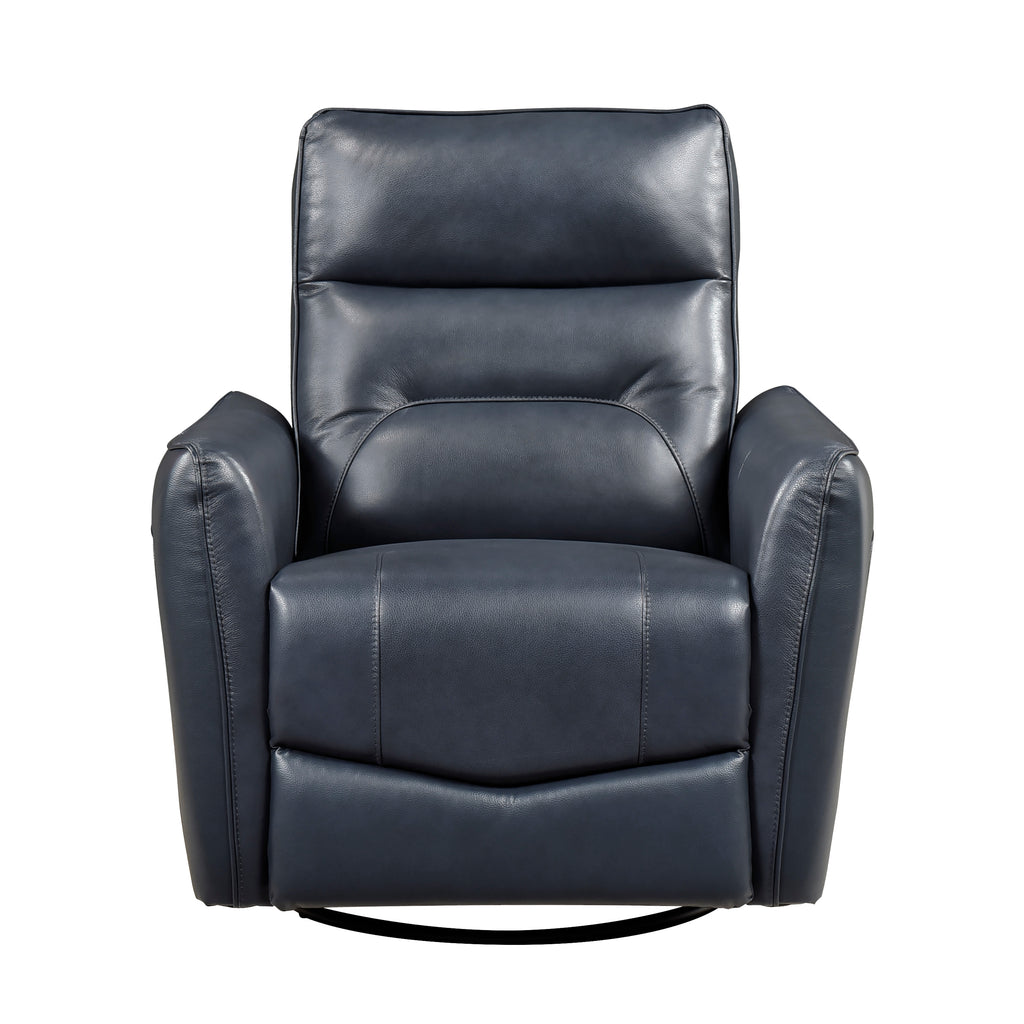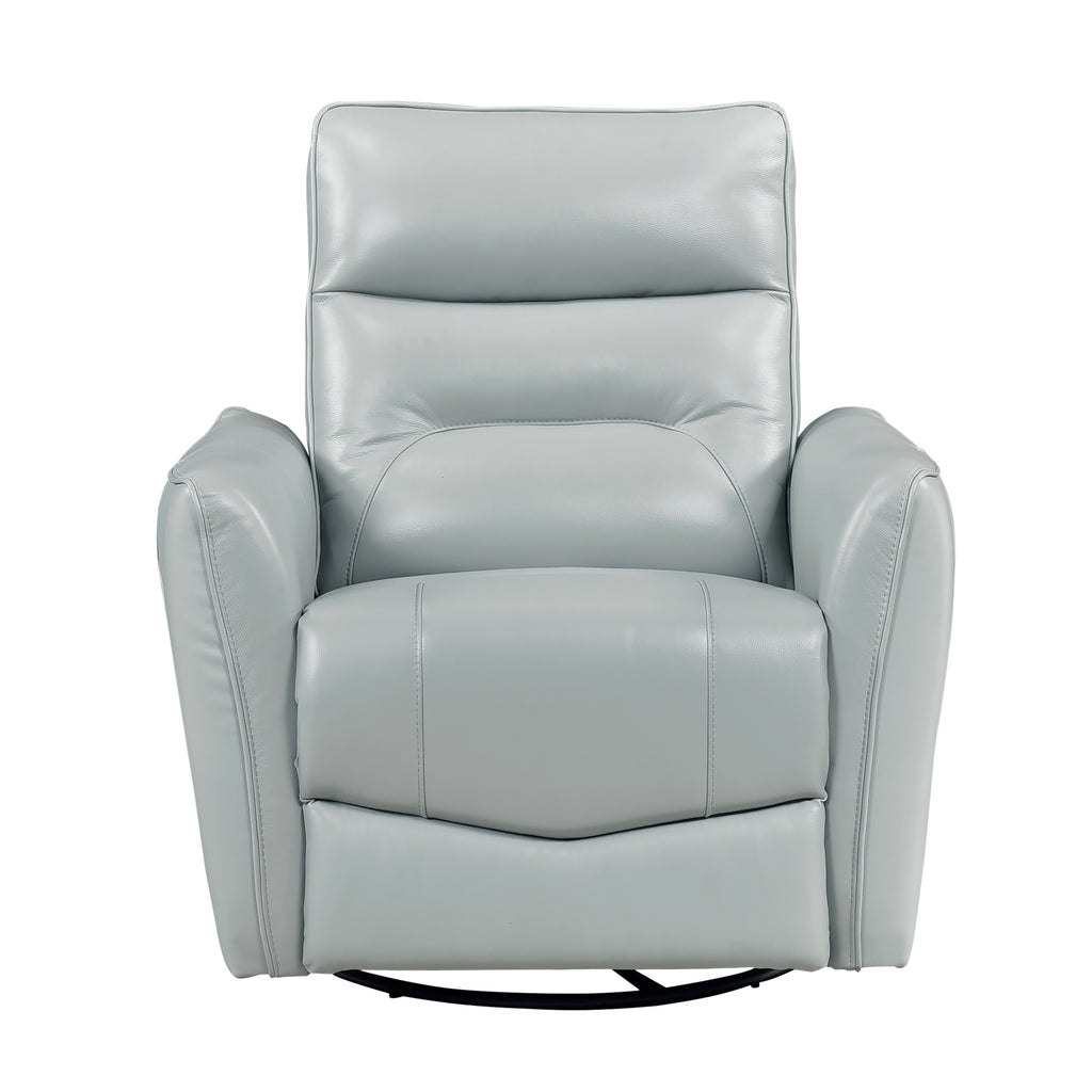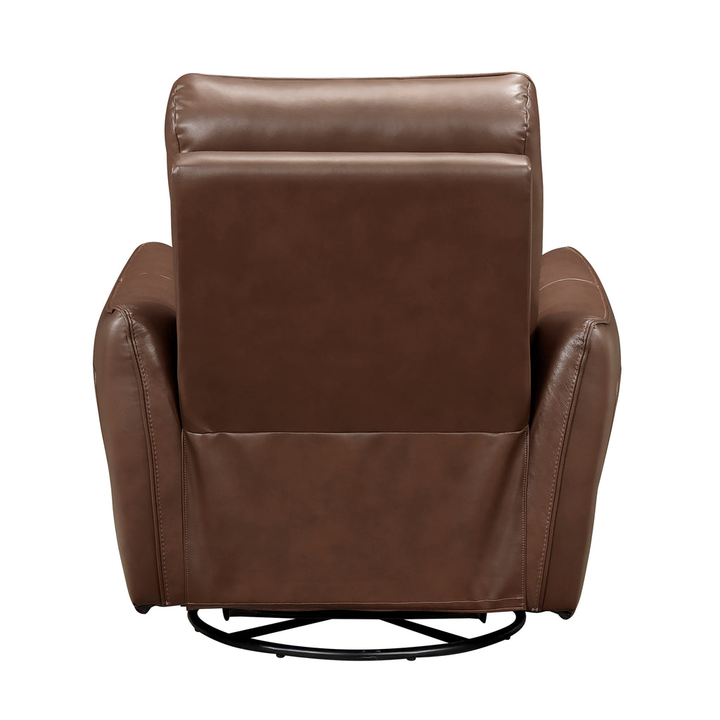 Indulge in ultimate relaxation with this luxurious top grain leather swivel glider recliner. Designed for both comfort and style, this recliner features a robust solid wood and plywood frame with a metal reinforced seat, ensuring durability and stability. The high-density foam padding over pocket coils provides exceptional support, while the top grain leather where the body touches offers a premium feel. Enjoy effortless reclining with the easy-to-use pull-handle mechanism, along with a smooth 360-degree swivel and gentle gliding motion for complete relaxation. The attached back and seat cushions maintain a sleek profile, and with a 300lbs weight capacity, this recliner is built for lasting comfort.