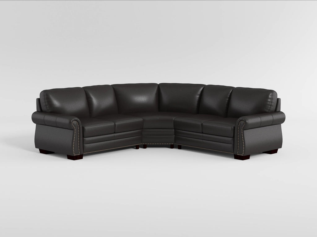 Traditional design and ample seating are paired to create the classic look of the Wareham Collection. Dark brown top-grain leather covers the plush seating of the sectional everywhere the hand touches – with faux leather match covering the remaining areas. Left and right side two-seat units are anchored by a corner piece, their profile defined by traditional lines, nailhead trim and rolled arms. 88 x 88 x 38.5H