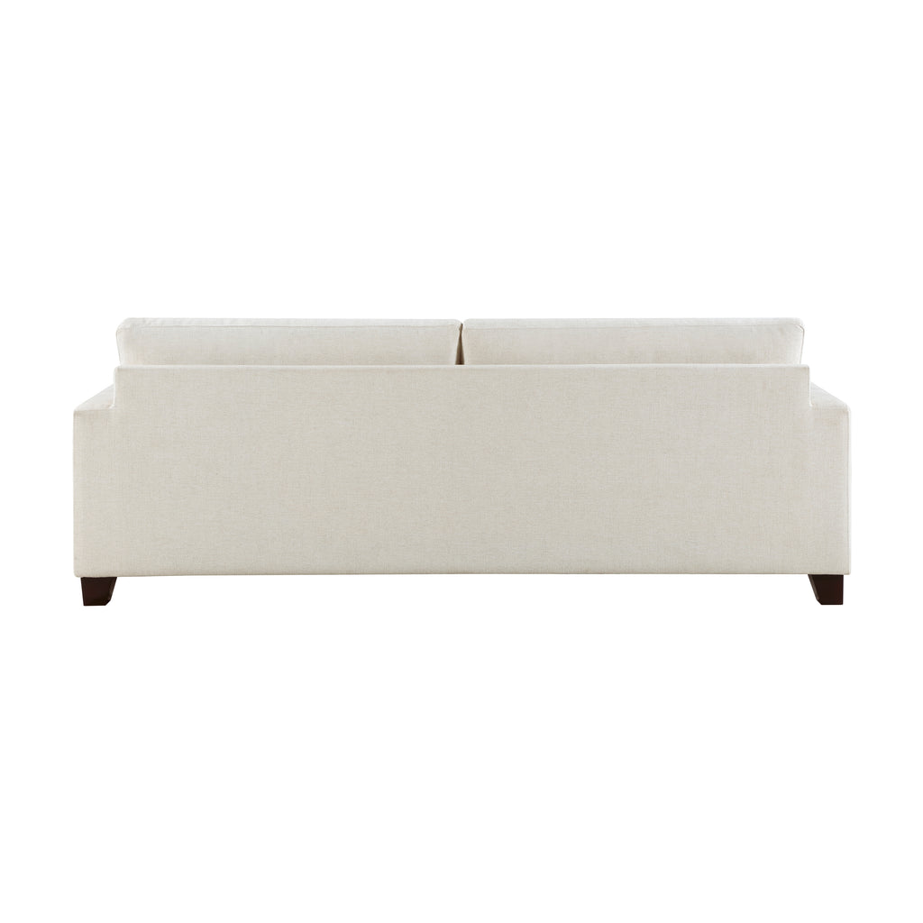 Enhance your living space with this sleek and modern upholstered sofa, designed for both style and superior comfort. Featuring clean lines, deep seating, and plush cushions, this couch provides a cozy yet refined aesthetic. The included two lumbar pillows offer additional support, ensuring optimal relaxation while adding a sophisticated touch to the design. Upholstered in soft, durable fabric, this sofa is built on a sturdy wooden frame with solid wood legs, ensuring long-lasting stability and durability. Whether placed in a living room, apartment, or office, this versatile sofa seamlessly complements any modern or transitional décor.